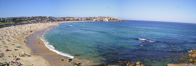 Aujourd'hui, nous sommes allé à la mythique plage de Bondi Beach, au sud de Sydney. Ce paradis pour surfeurs est protégé par un filet qui ferme la crique aux requins et autres squales.